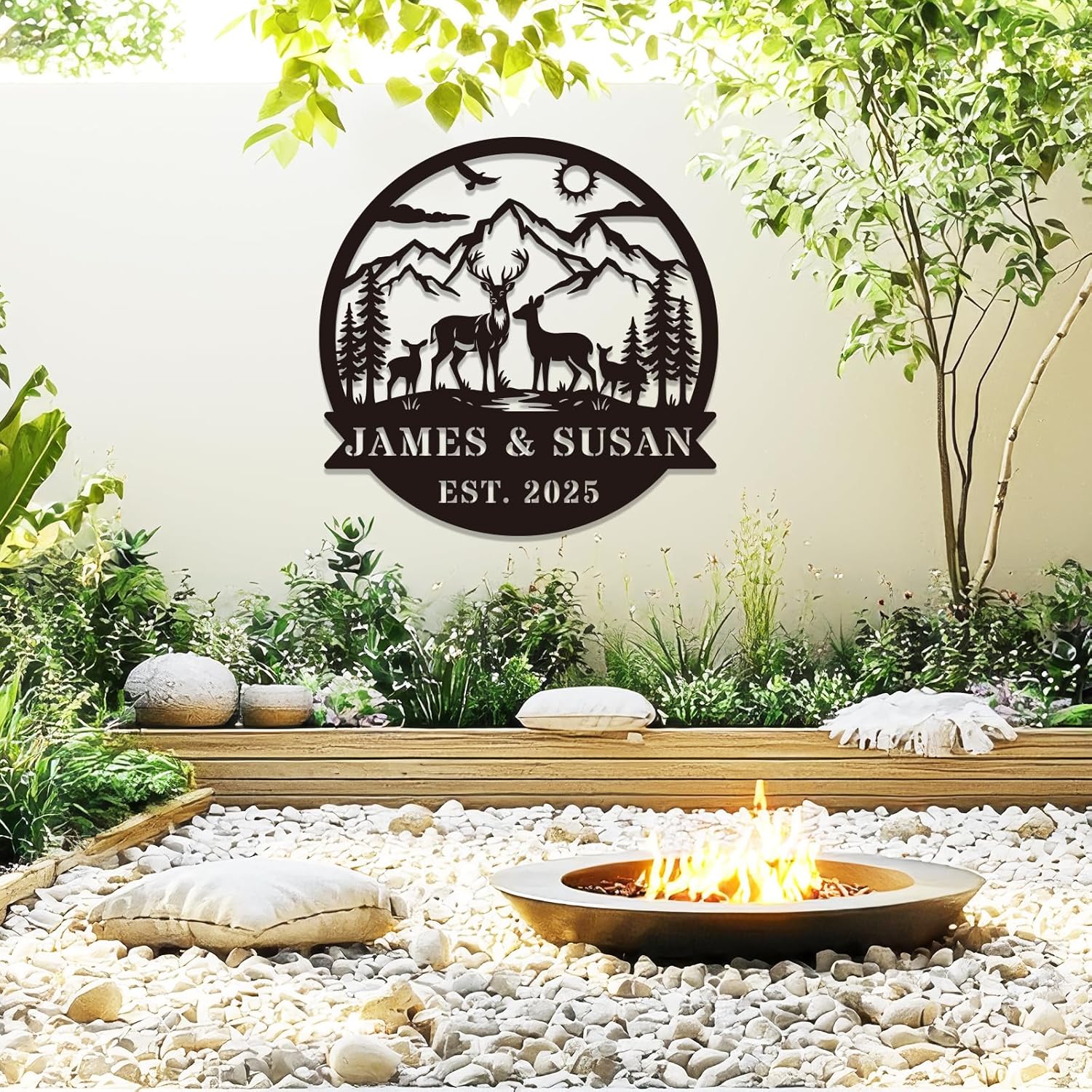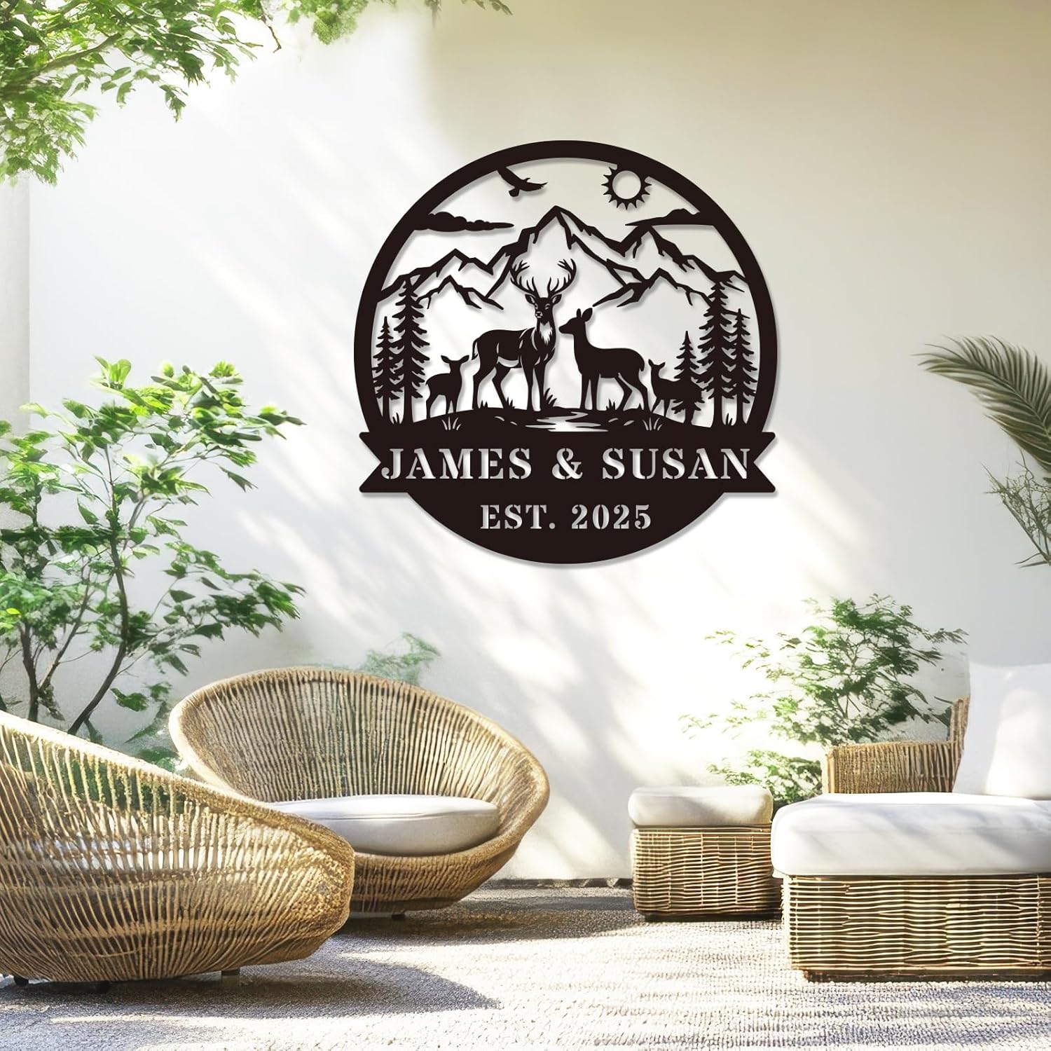 Personalized Rustic Metal Deer Cabin Sign, Outdoor Welcome Sign for Front Porch, Great Custom Metal Name Sign Gift for Hunters, Farmhouse Cabin Decor