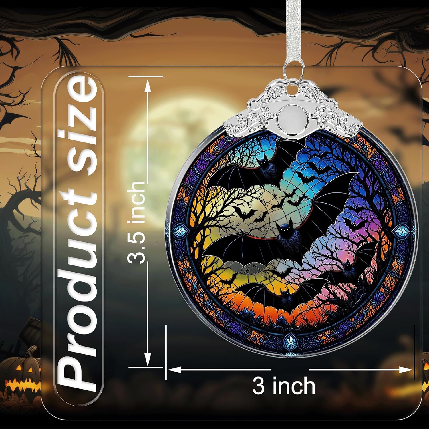 Bat Under Moonlight Halloween Christmas Tree Ornament Glass- Hanging Ornaments for Christmas Tree Decorations - Holiday Keepsake Present Exchange Idea