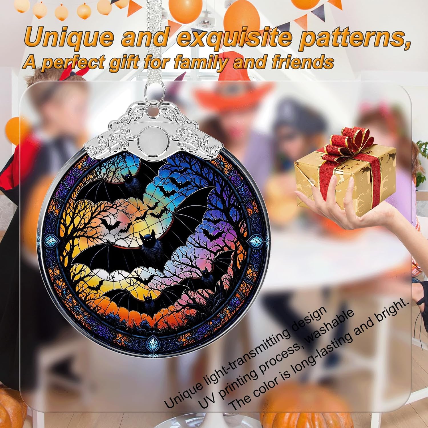 - đăUnique DesignăEach one is meticulously designed with bright and vivid Halloween and Christmas patterns. The combination of the glass's light-transmitting refraction and the metallic texture of the decorative ring makes them ideal choices for gift exchanges during festivals and for decorating Christmas trees. These ornaments may bring smiles to both the recipients and the gift-givers and create lasting memories for years to come.