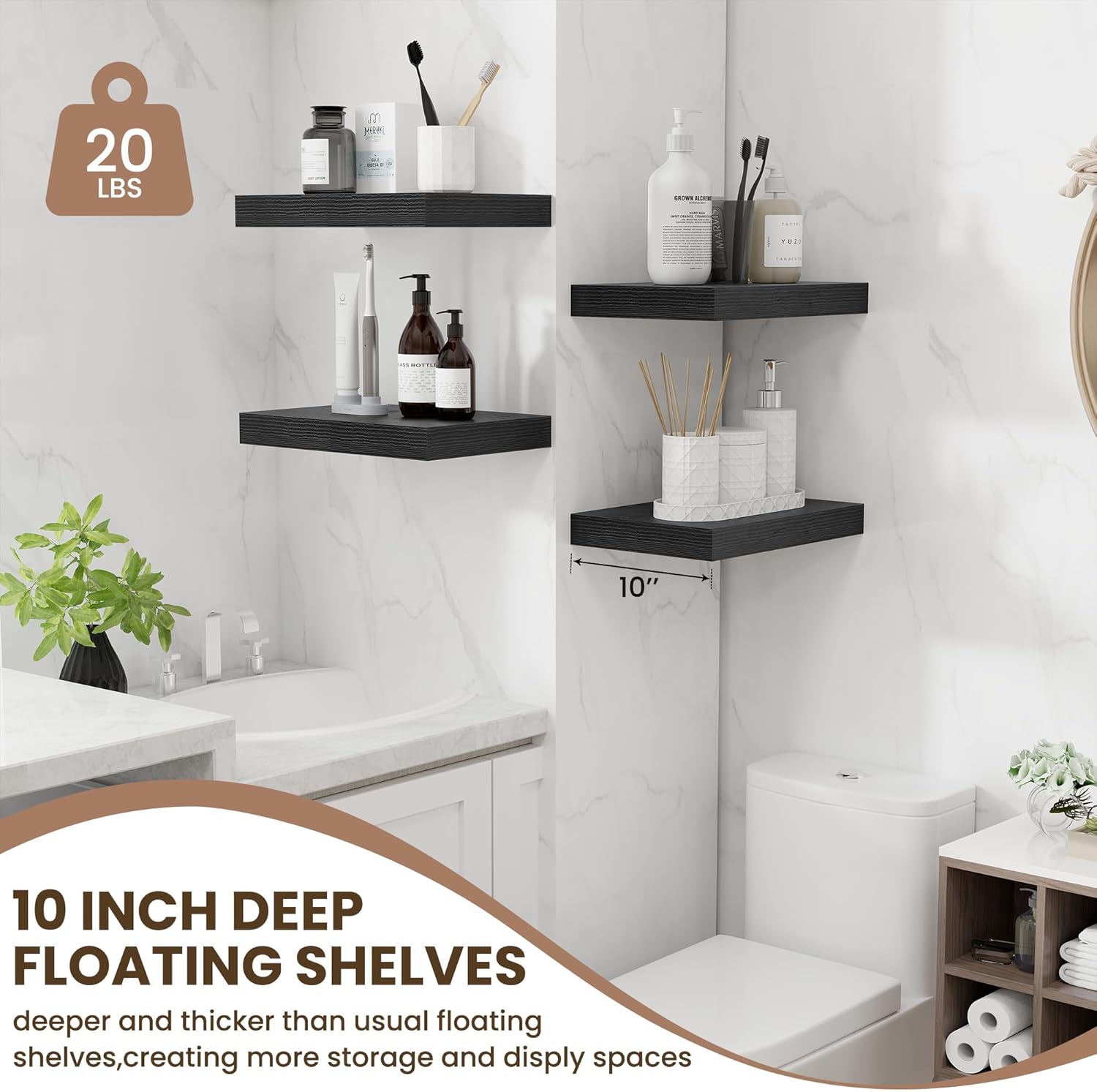 - 10 INCH DEEP: This wall shelf has a 10-inch depth and offers plenty of space to store books, pictures, models, or small plants. Its extra-deep design ensures that your items are displayed neatly while maintaining a clean, organized aesthetic