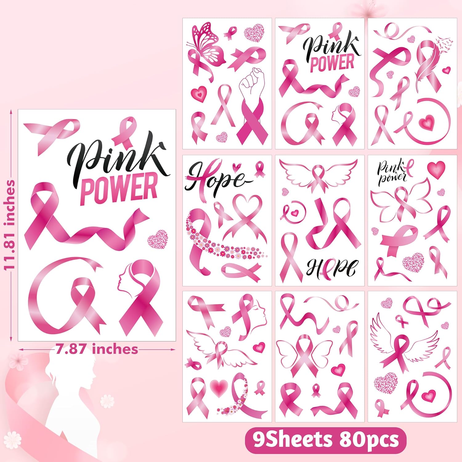 - Premium Breast Cancer Awareness Decorations - This 9-sheets set features high-quality PVC window clings (11.81×7.87 inches each) designed for Breast Cancer Awareness Month. These static-cling Breast Cancer stickers require no glue, leaving no residue while staying vibrant all month.