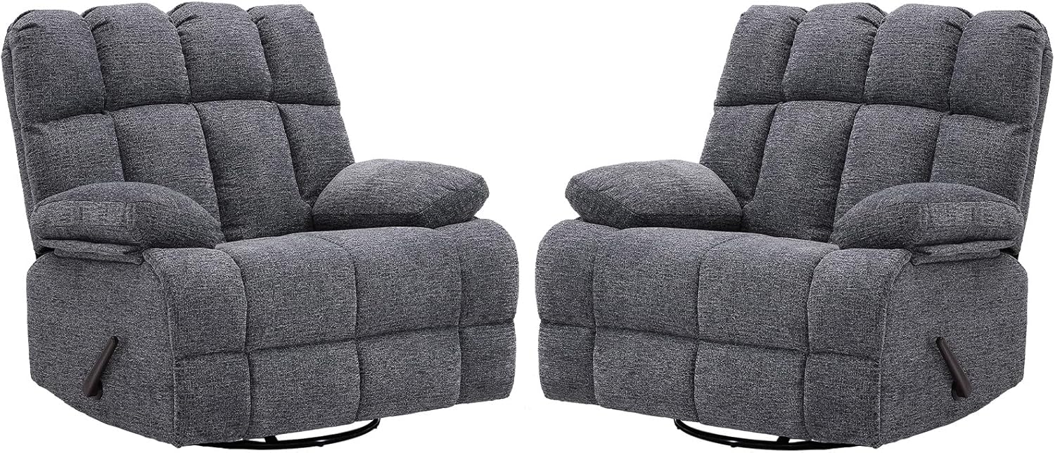 Oversized Swivel Rocker Recliner Chair Set of 2 for Adult, Rock Recliner for Big Man, Extra Wide Manual Recliners, Overstuffed Soft Rocking Sofa Chair,Light Grey