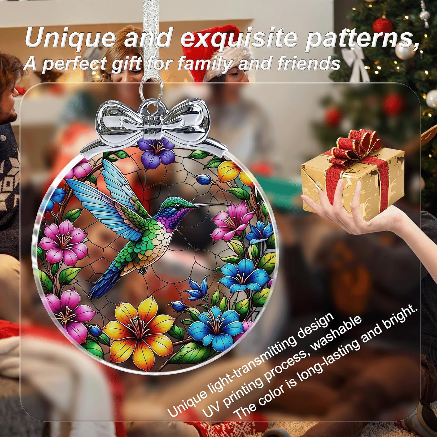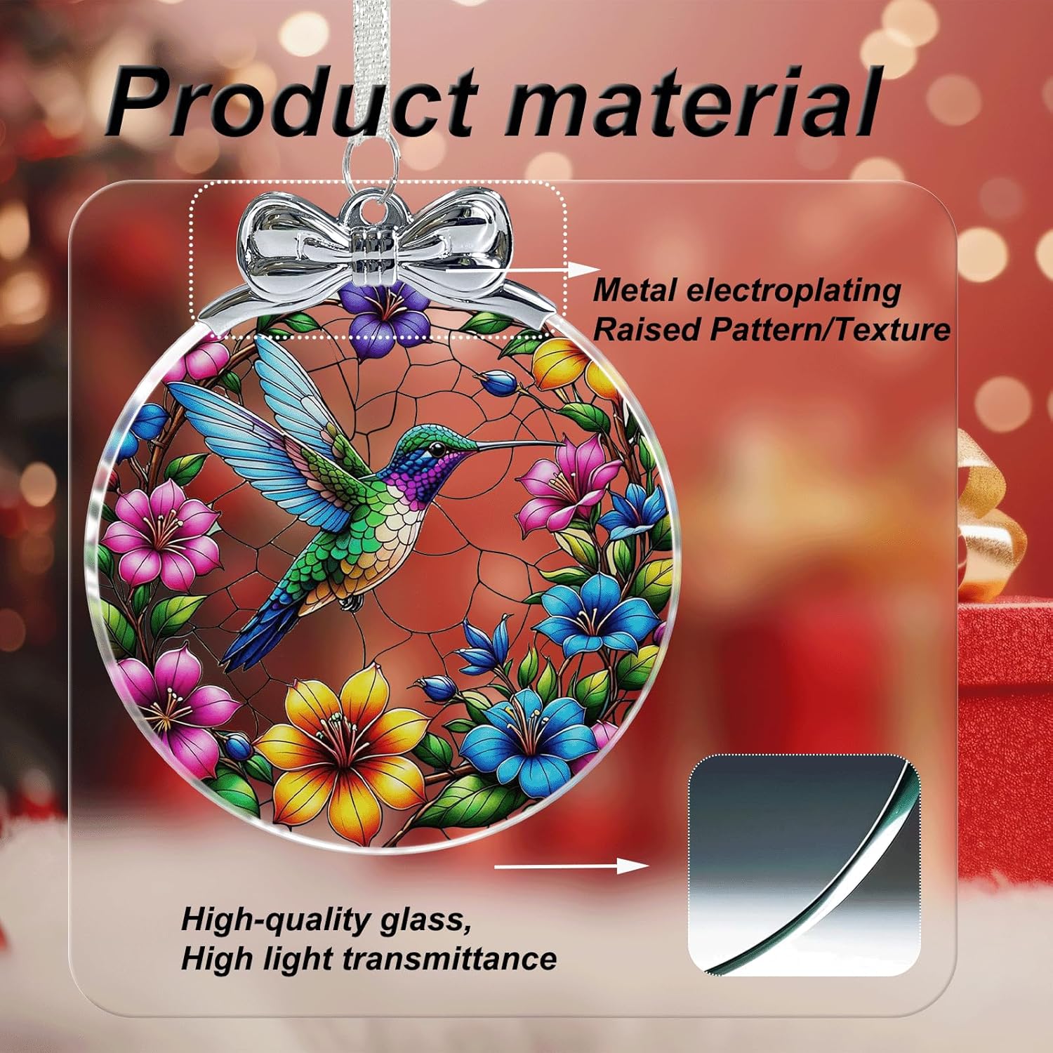 Hummingbird Stained Glass Christmas Ornament - Hanging Ornaments for Christmas Tree Decorations -Holiday Keepsake Present Exchange Idea