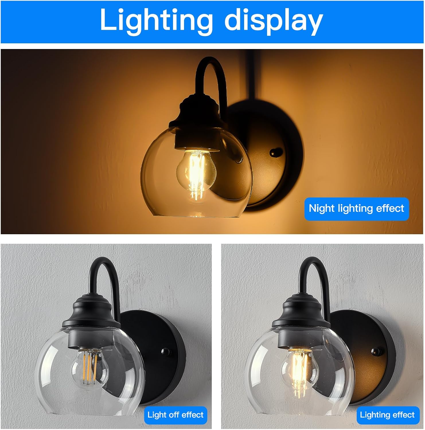 - [Excellent wall lamps]: Two sets of wall lamps are composed of transparent glass lampshades and metal bases. The transparent glass lampshades ensure good light transmittance. The gooseneck design not only restores the classic farmhouse style but also brings a touch of tenderness to your space, making it less rigid. The manufacturing process of matte black metal paint ensures that the wall lamps will not oxidize or fade.