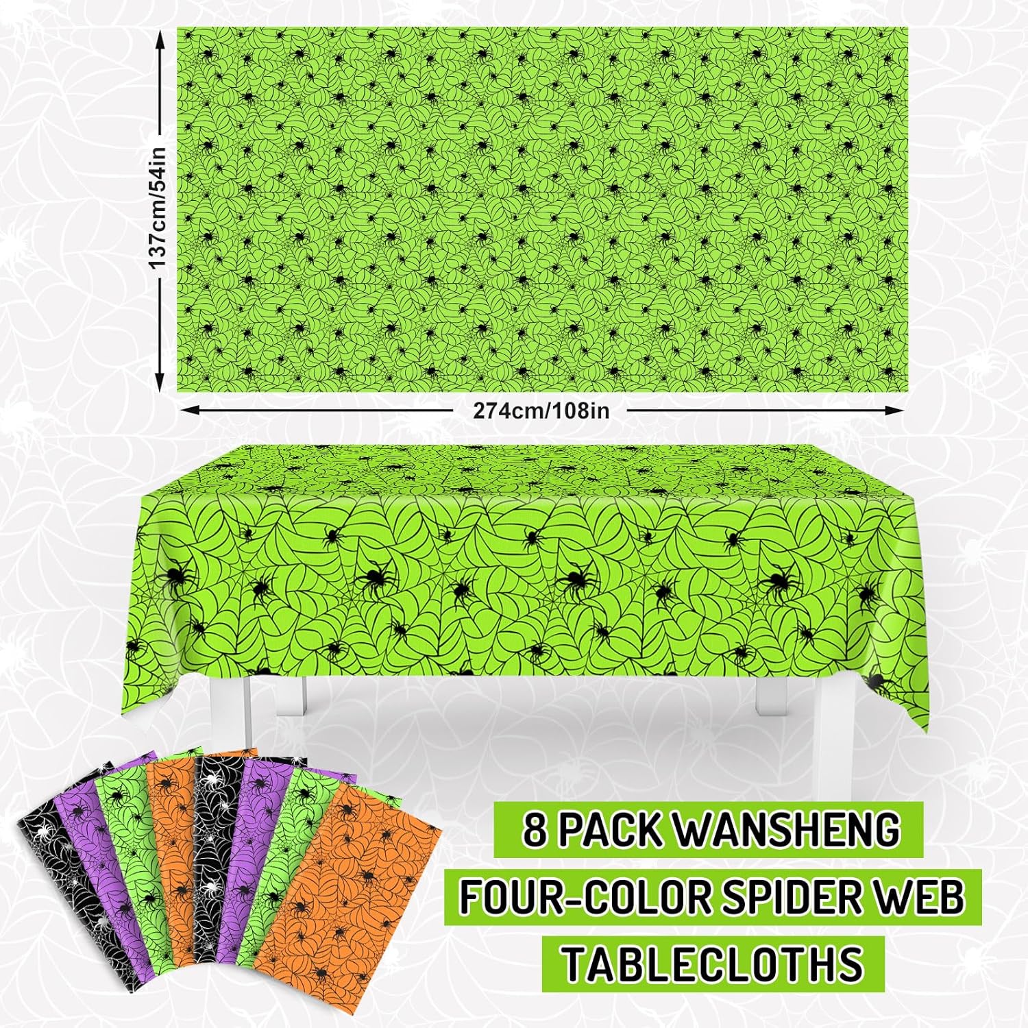 Whaline 8 Pcs Halloween Plastic Tablecloths Colored Spider Web Disposable Table Cover Spiderweb Rectangle Table Cloth for Trick or Treat Holiday Party Decor, 54 x 108 Inch