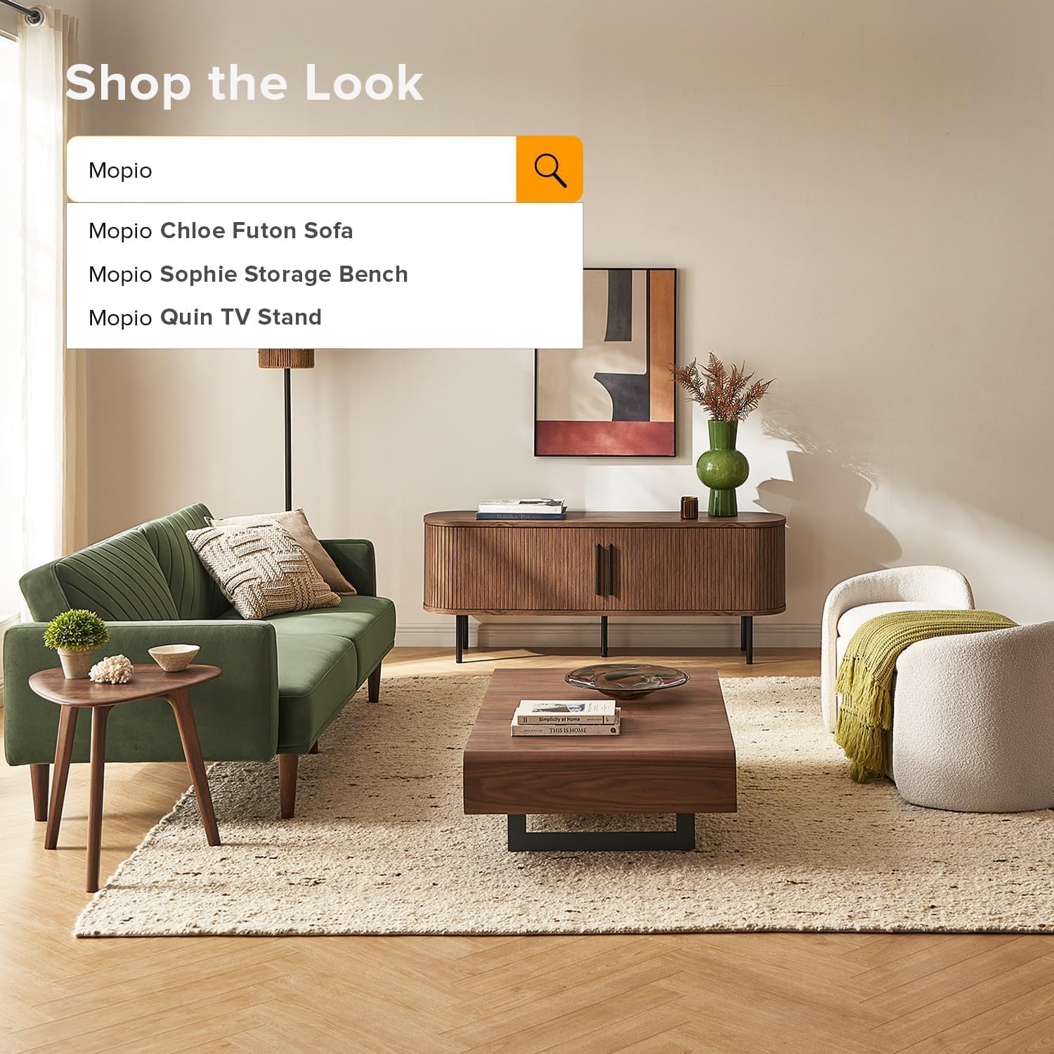 mopio Quin TV Stand, Mid Century Modern for 55/60/65 inch TV, Farmhouse TV Stand, Entertainment Center with Storage, TV and Media Console for Living Room (Walnut, 59" Tambour)