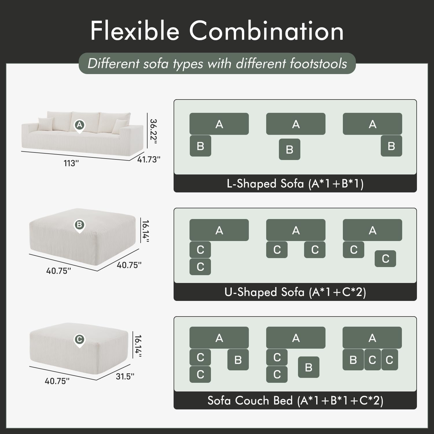Boneless Sectional Cloud Couch Sofa for Living Room, 112" L-Shaped Modular Modern Lounge Sleeper Beige Couches with Chaise, No Assemble, Cordury Compression Upholstered Sofas