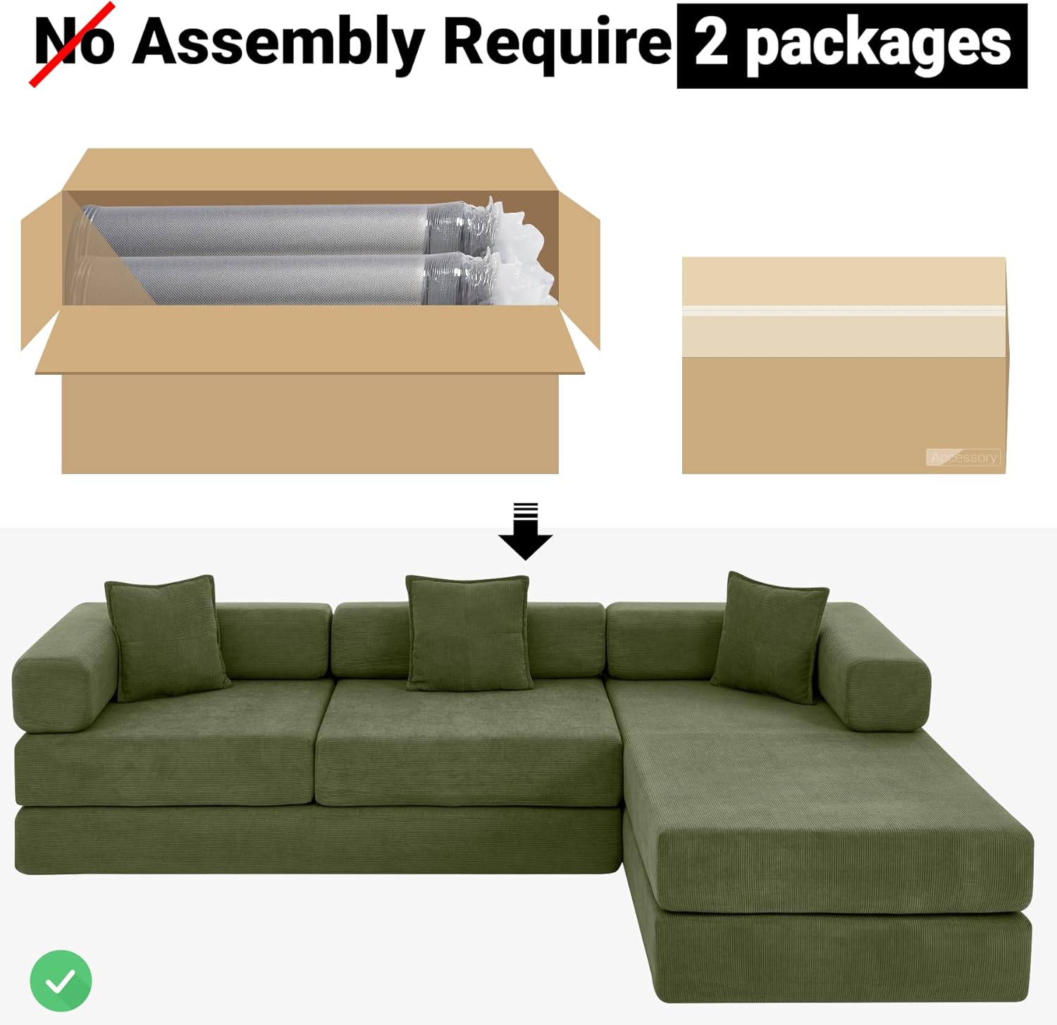 - No Assembly Required: The folding sleeper sofa bed comes vacuum-packed, and once unpacked, no assembly is needed. Just wait 72 hours, and it will magically return to its perfect shape, just like shown in the pictures, ready to provide ultimate comfort