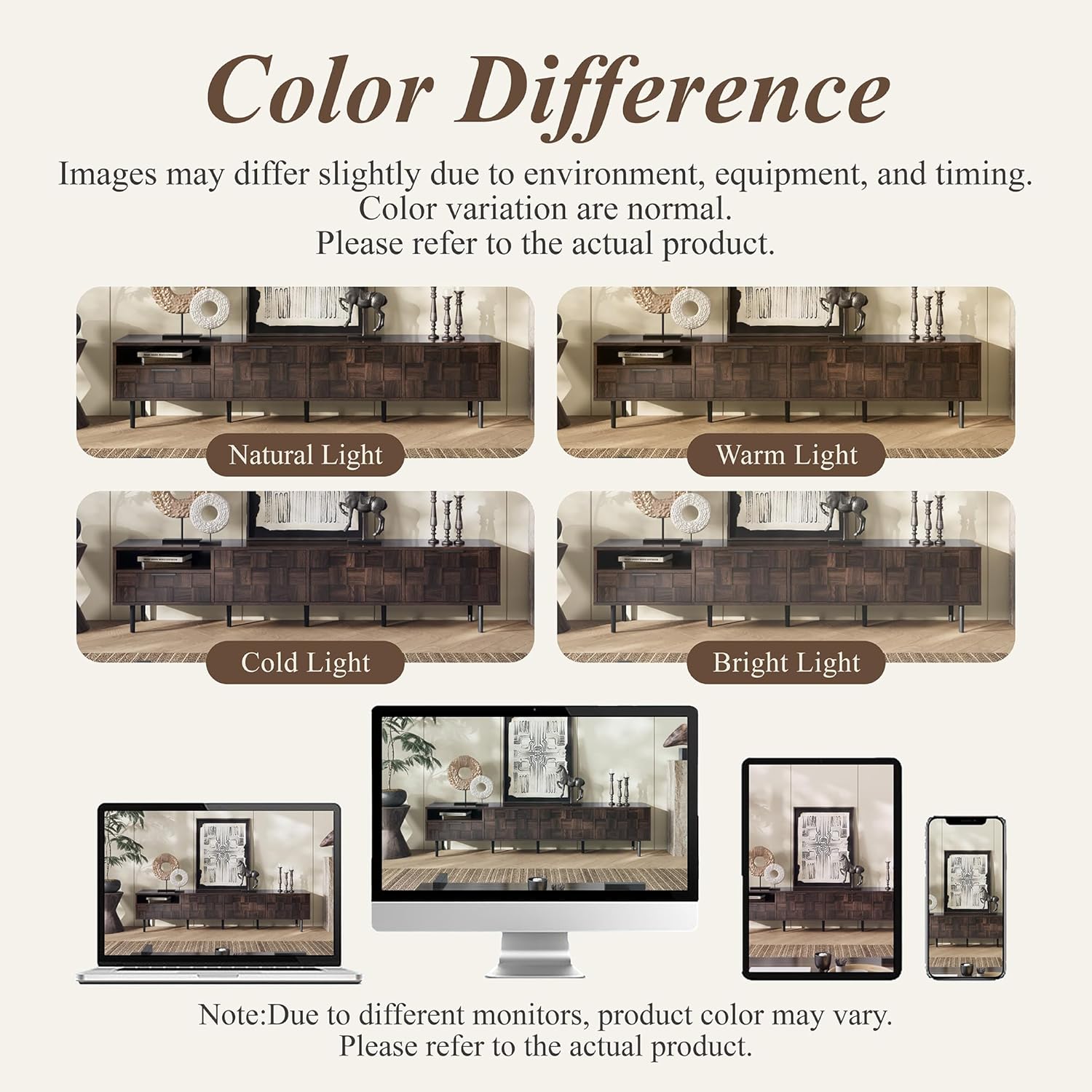 - Mid-Century Modern Appeal – This TV stand blends retro charm with contemporary flair, featuring a clean-lined silhouette, elegant wood finishes, and a unique checkered door design that adds texture and visual interest to your living room.