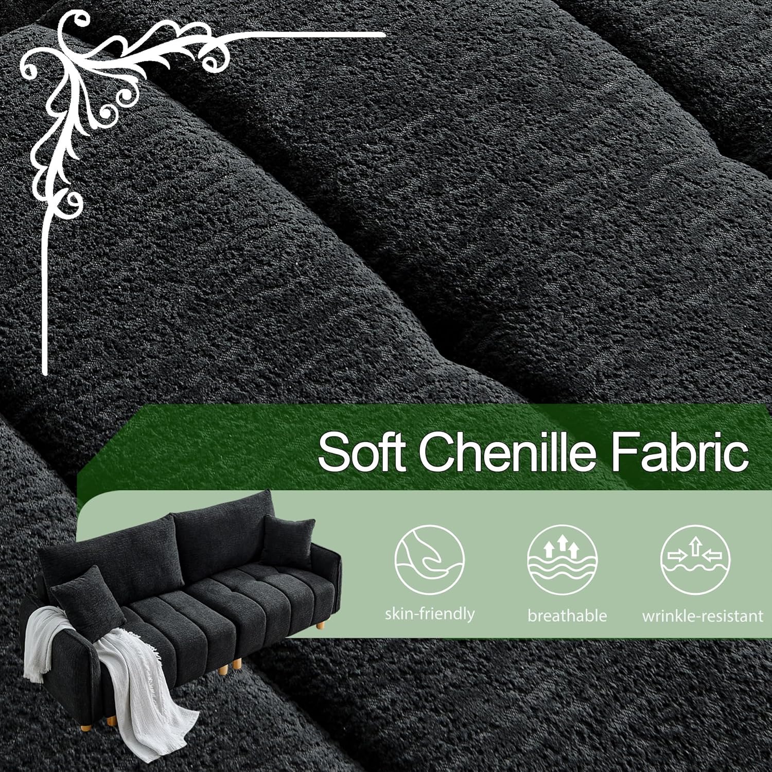- Luxury Chenille Fabric -This sleeper sofa adopts high-end chenille upholstery, which is skin-friendly, breathable and durable, offers unparalleled comfort and texture. This comfy sofa bed provides excellent comfort whether you're sitting or lying on it. It features soft and supportive seat cushions and backrests, as well as an appropriate mattress thickness with just the right level of softness and firmness