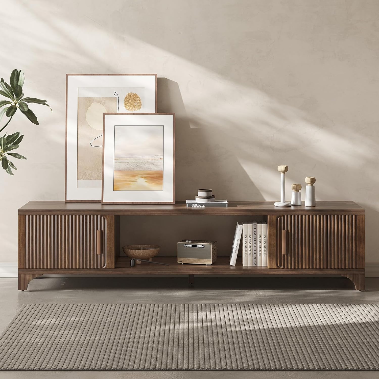 - [Clutter-Free Cable Management]- Designed with 1 open shelf and 2 cabinets, this tv console features hidden cable access holes (1 per cabinet) to neatly store game consoles, routers, and cables. Keep your space tidy and minimalist, just the way you like it.
