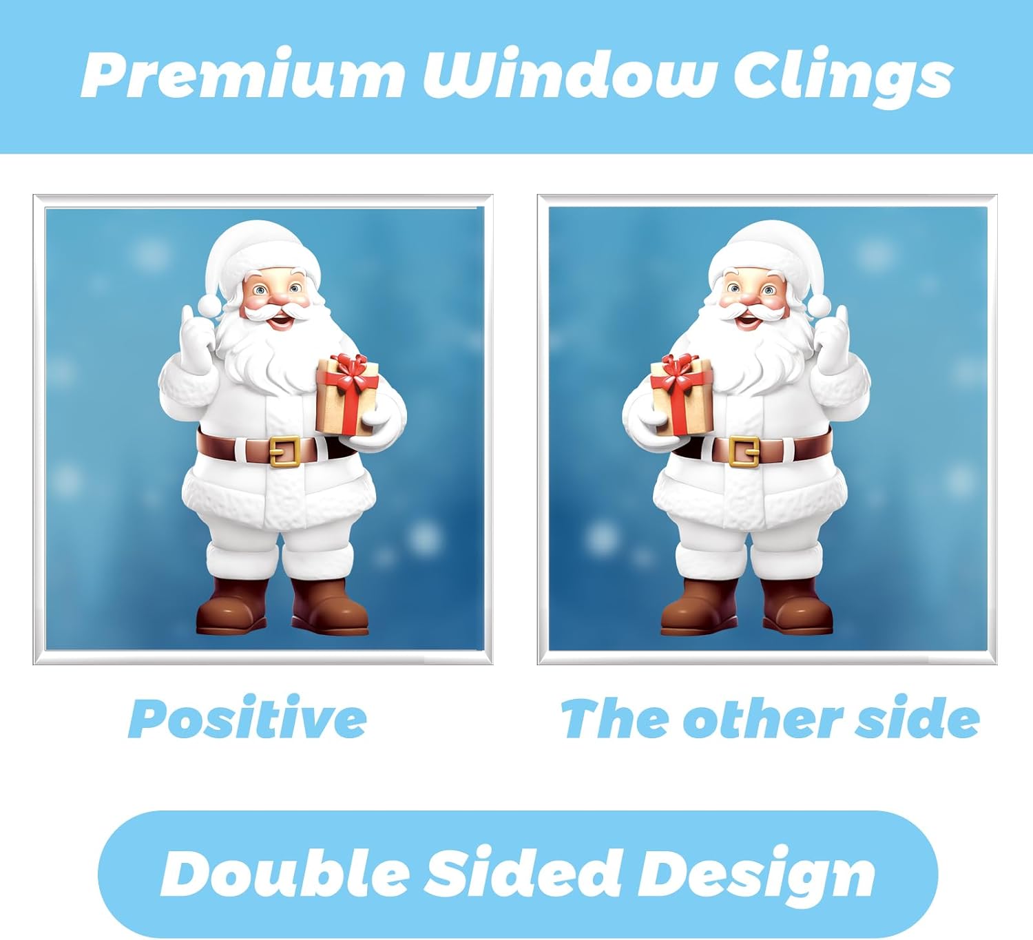 - DOUBLE-SIDED DESIGN:These Christmas Window Clings feature double-sided printing,Whether admired from the cozy indoors or seen by passersby outside,these stickers showcase festive details beautifully.