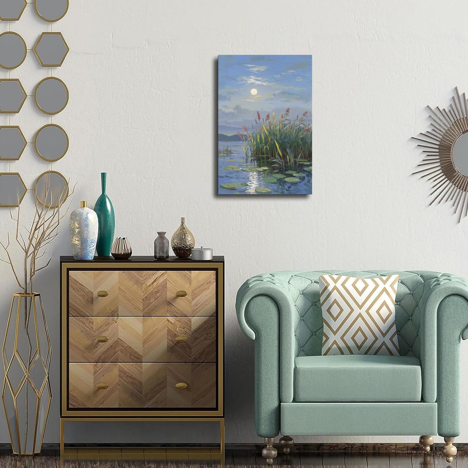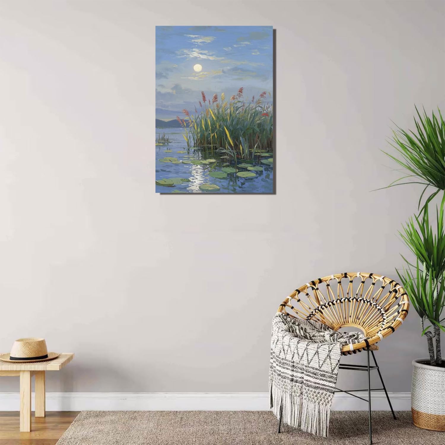 Landscape poster artwork art poster natural landscape painting reed marsh under the moonlight suitable for living room bedroom home wall