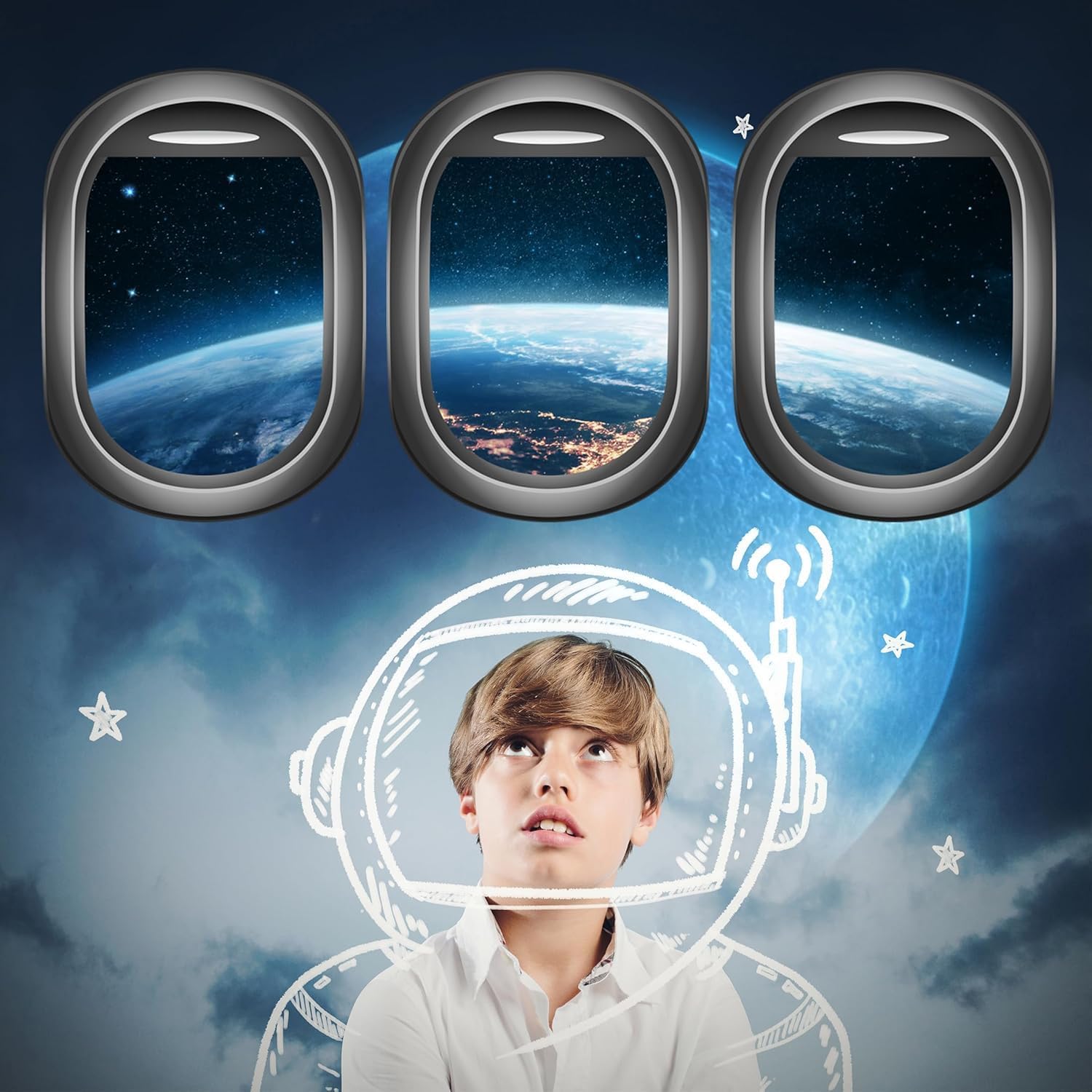 - Product Content : A set of 3 glow - in - the - dark outer space window stickers. Each sticker measures 8.26x11.6 inches.featuring a variety of space elements like Earth, Galaxy, meteors.