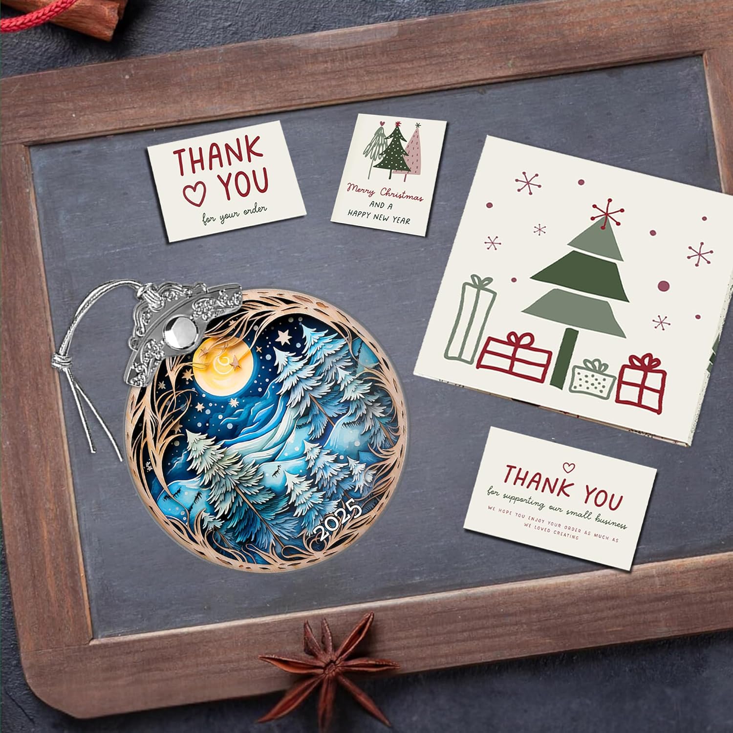 - ๐ Winter Night Scene Ornament 2025 โ Beautiful acrylic ornament featuring snowy pine trees, glowing full moon, and starry sky, perfect for holiday tree dรฉcor.