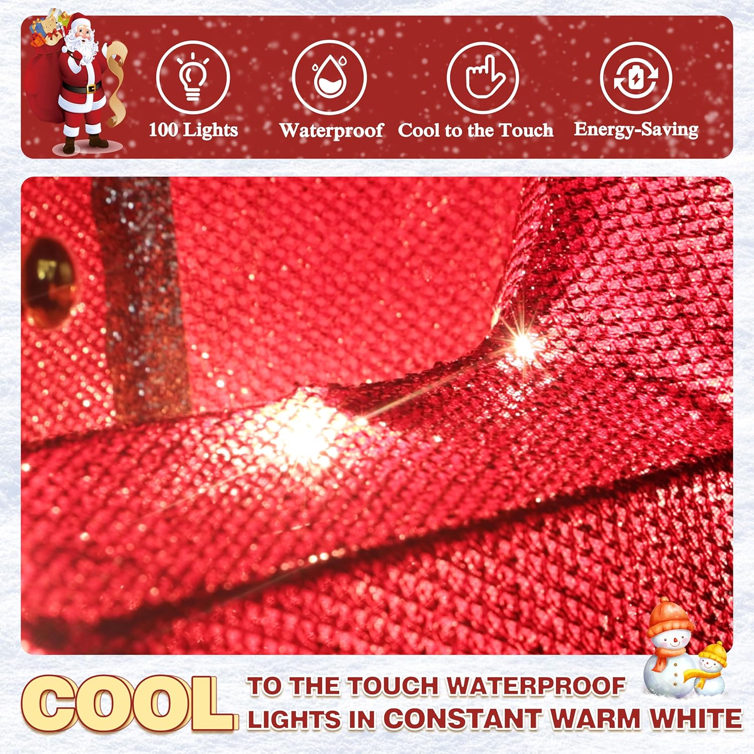 - Weather-Friendly Design: This soldier is equipped with 16.4FT water-resistant cord and lights, so you don't have to worry about safety issues. Although, it has 100 lights, it’s still energy-saving. Besides, pre-strung fairy lights remain cool to the touch in constant warm white. Attention: this outdoor Christmas decoration is NOT supposed to be used in heavy windy or rainy days