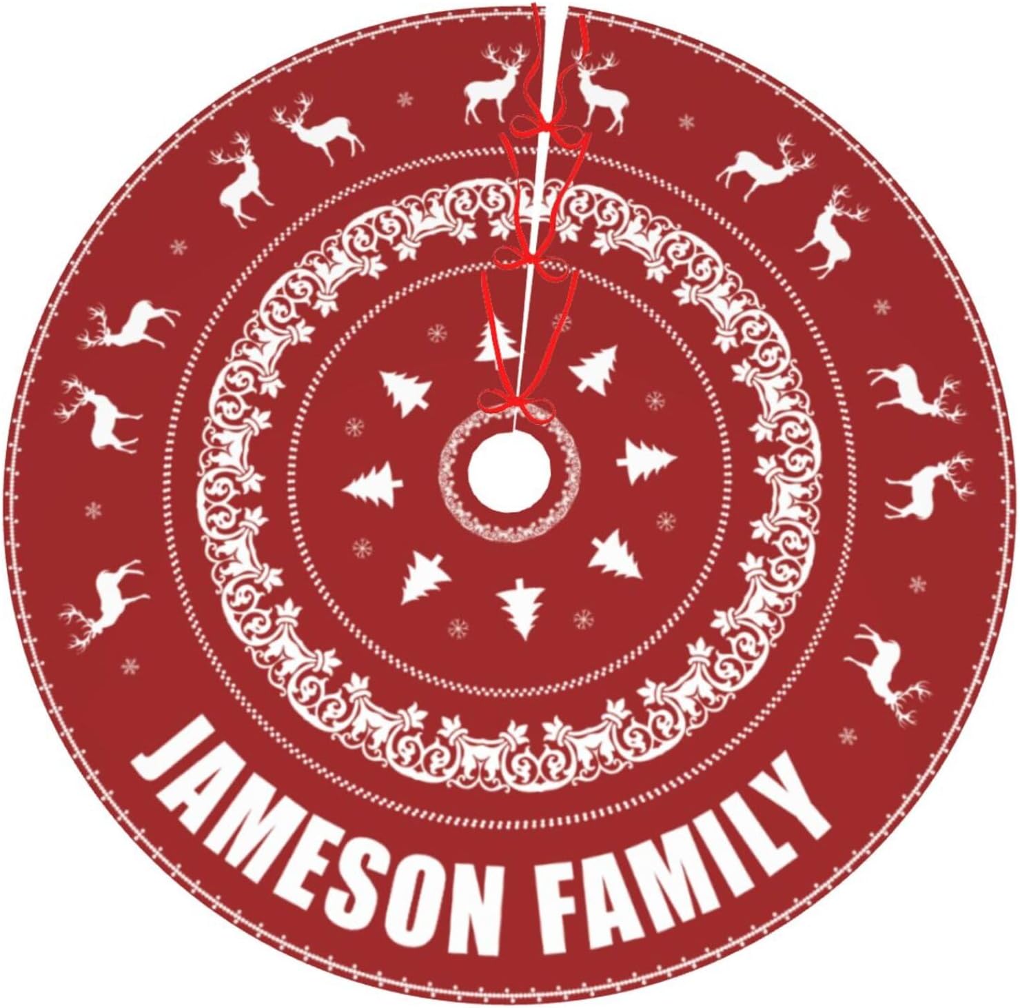 Custom Christmas Tree Skirt with Name, Personalized Holiday Xmas Tree Decor Gifts for Party Family Home, 30" - 48", Deer Pattern