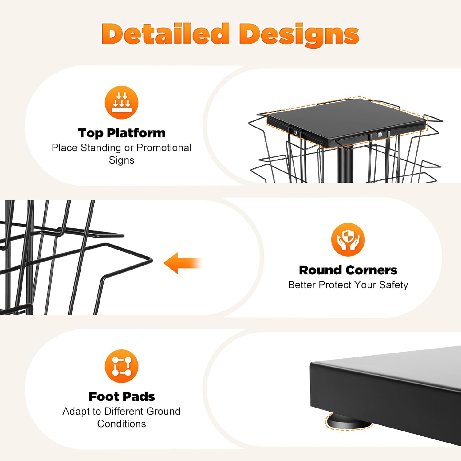 - 【Smooth 360° Rotation Design】The full 360-degree rotation and open-frame design make every item is visible and accessible from any angle. Perfect for corner placements or high-traffic areas, this stand encourages interaction and engagement. You can easily turn the stand to view all sides, enhancing experience