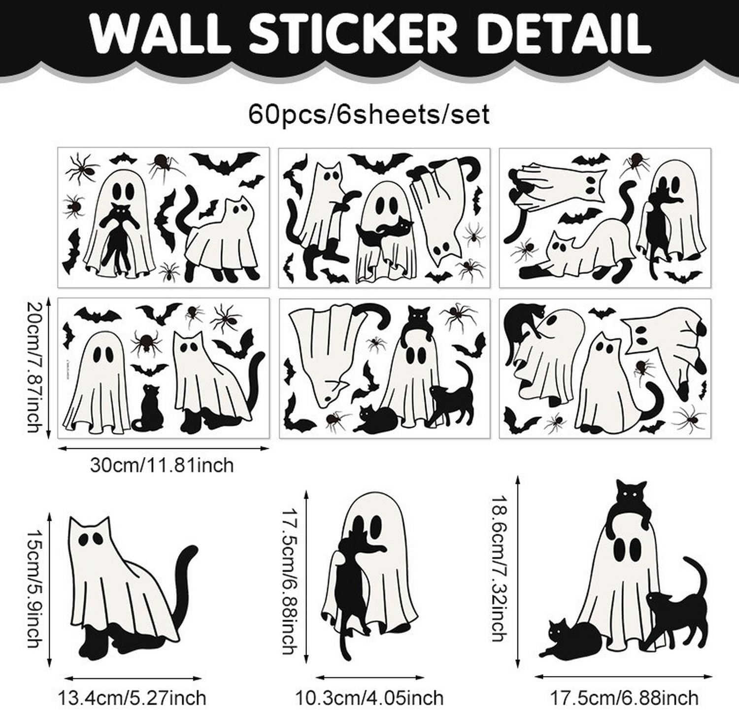 Halloween Ghost Window Clings for Glass 6 Sheets Cute Window Decals Spooky Window Stickers Cat Spider Reusable Windows Cling for Halloween Fall Party Home School Office Glass Supplies Decorations