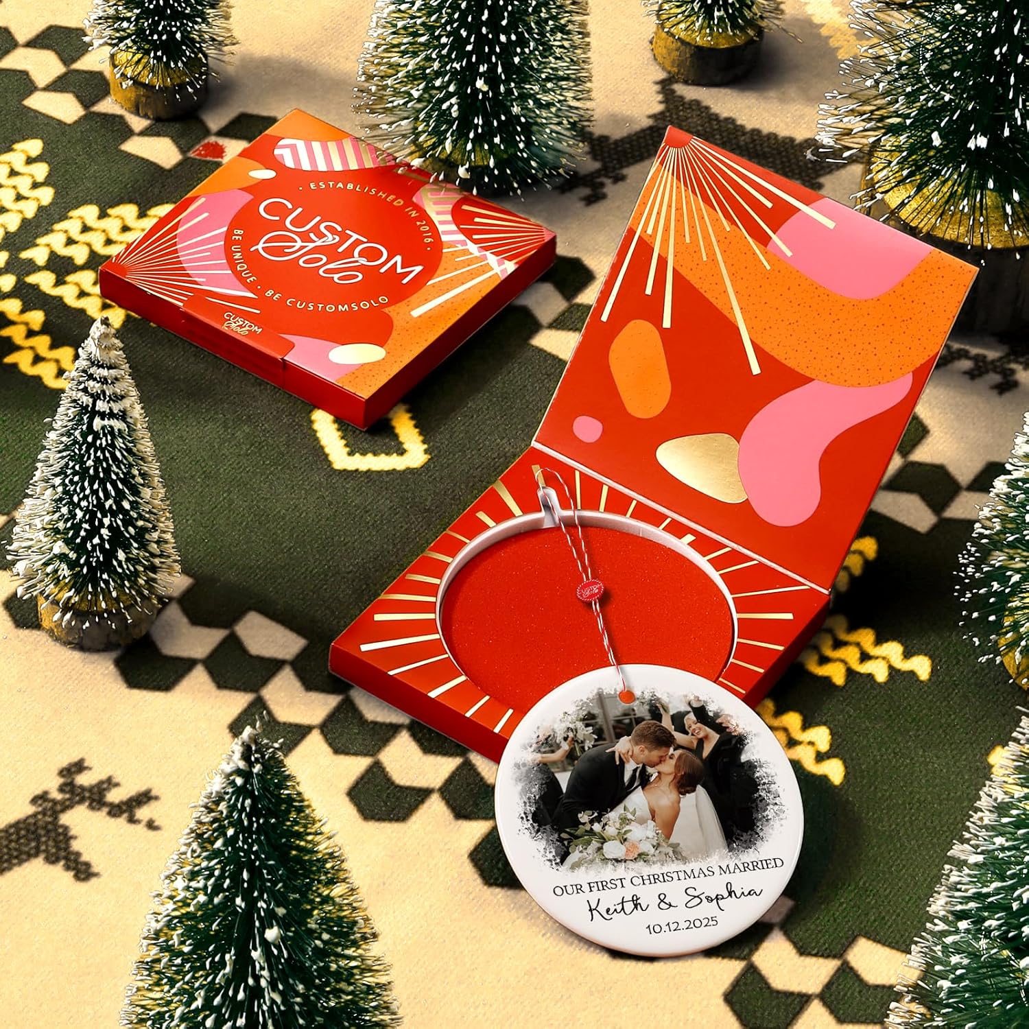 - 🎁 First Christmas Married Gifts 🎁 Celebrate your first christmas together with this personalized first christmas married ornament 2025! This personalized christmas ornaments marks your special milestone—it’s an unique and unforgettable gift for: newly married couples celebrating their first Christmas, and wedding attendees looking for the perfect post-wedding gift. Each has gift-ready packaging for easy gifting of the thoughtful personalized christmas gifts