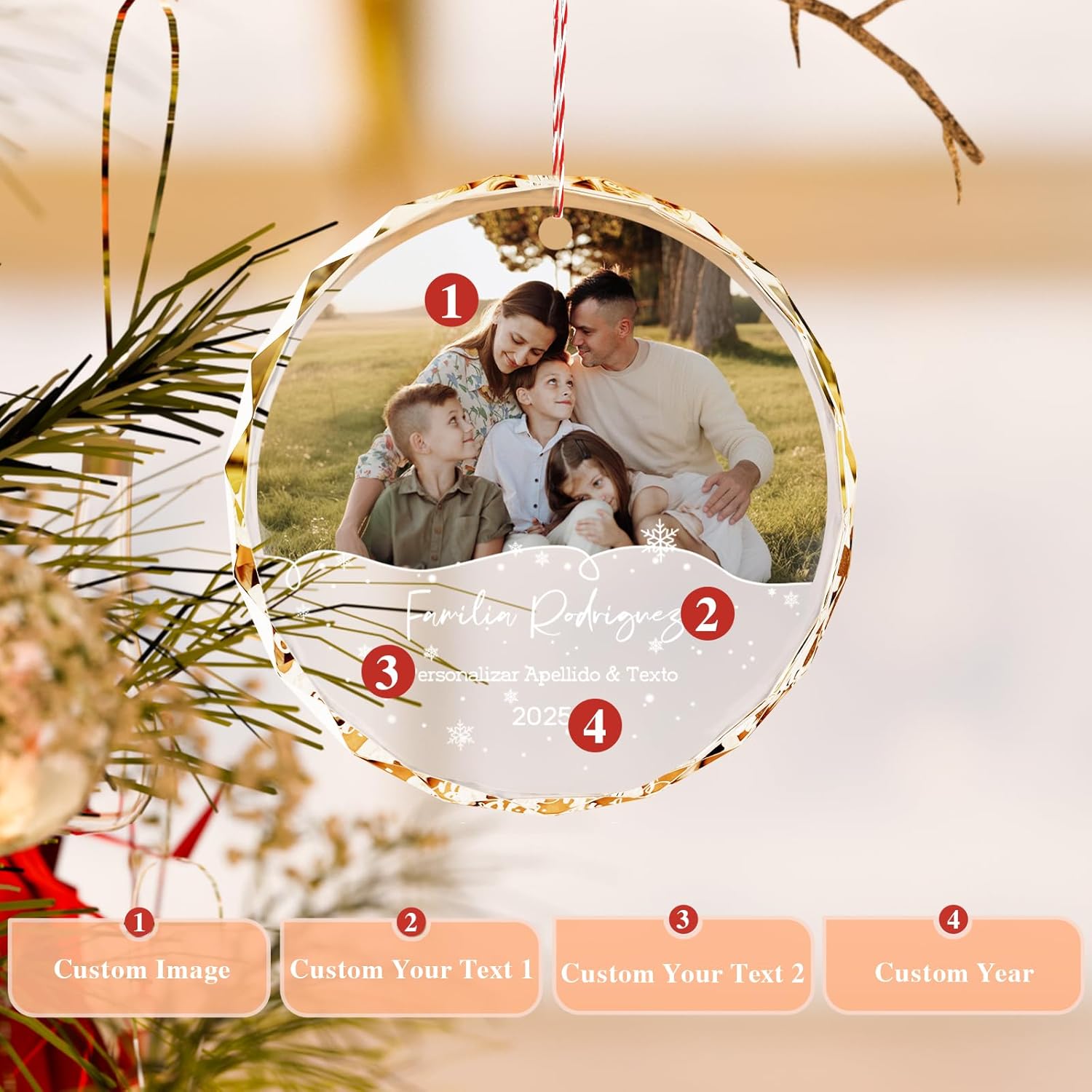 - 💎 Custom Crystal Family Ornament – Crafted from premium clear crystal, this ornament allows you to upload a family photo and add names or year. A beautiful way to celebrate your family’s holiday memories